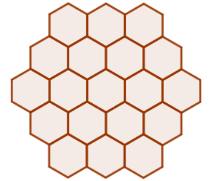 Berapa banyak warna berbeda minimal yang dibutuhkan untuk mewarnai setiap segienam di atas sehingga tidak ada dua segienam berwarna sama yang memiliki minimal satu sisi yang saling berhimpitan?