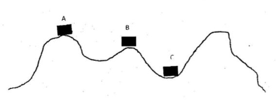 Diawali dari posisi puncak A, landrover meluncur bebas melewati posisi B dan C. Asumsikan tidak ada gesekan dan faktor eksternal yang mempengaruhi landrover. Pilih pernyataan yang benar!