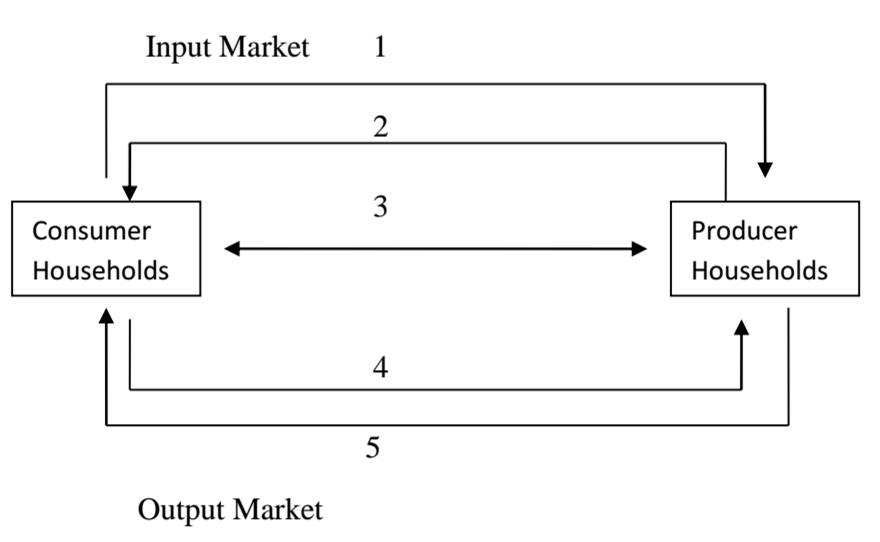 Look at the following diagram that shows the interaction between the producer and the consumer of households below: