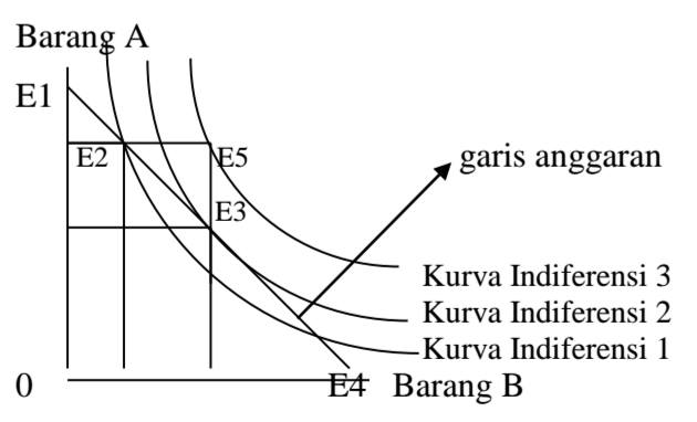 A boy who possesses Rp1.000,00 is confronted with two choices either to buy a piece of cake or salted egg. The price of the cake equals with a salted egg. If the determines to buy the cake, he can’t buy the egg and on other way round.