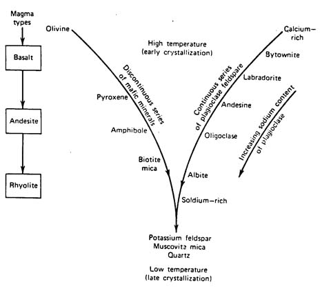 Deret ini dibangun dari mineral feldspar plagioklas. Dalam deret kontinyu, mineral awal akan turut serta dalam pembentukan mineral selanjutnya. Dari bagan, plagioklas kaya kalsium akan terbentuk lebih dahulu, kemudian seiring penurunan suhu, plagioklas itu akan bereaksi dengan sisa larutan magma yang pada akhirnya membentuk plagioklas kaya sodium. Demikian seterusnya reaksi ini berlangsung hingga semua kalsium dan sodium habis dipergunakan. Karena mineral awal terus ikut bereaksi dan bereaksi, maka sangat sulit sekali ditemukan plagioklas kaya kalsium di alam bebas.