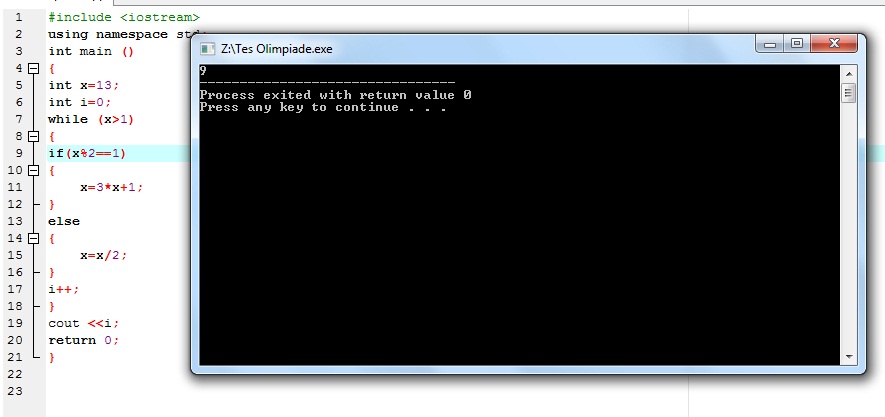 x=20/2 =10; i=3