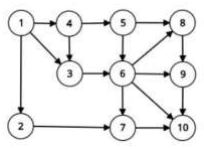 Graph di samping kanan menggambarkan peternakan dimana Pak Dengklek tinggal, yang terdiri dari 10 kandang dan 16 jalan satu arah. Pak Dengklek sedang berada di kandang nomor 1 dan ingin menuju kandang nomor 10. Berapa banyak rute berbeda yang dapat ditempuh Pak Dengklek? Dua arah. Pak Dengklek sedang berada di kandang nomor 1 dan ingin menuju kandang nomor 10. Berapa banyak rute berbeda yang dapat ditempuh Pak Dengklek? Dua rute dikatakan berbeda jika pak Dengklek melalui 2 jalan yang berbeda.