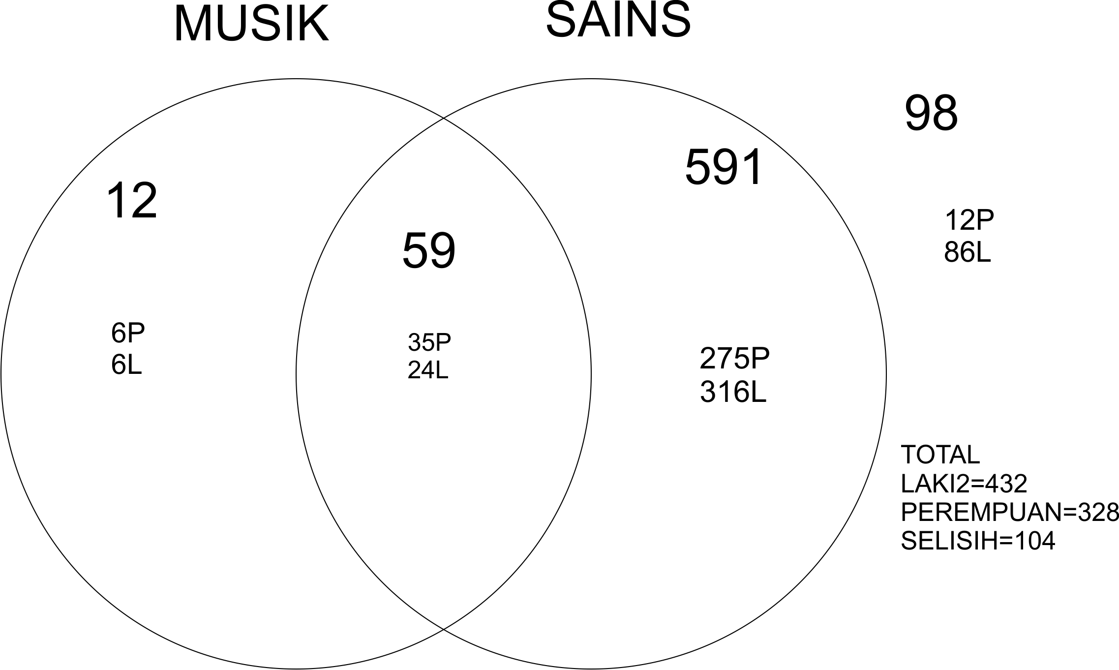 59 tambah 21 berapa? 59 itu kan sebagian dari total peserta klub musik yang ikut klub sains. Misalkan kamu ikut 2 bidang intu, nah. nama kamu pasti salah satu antara 59 orang itu