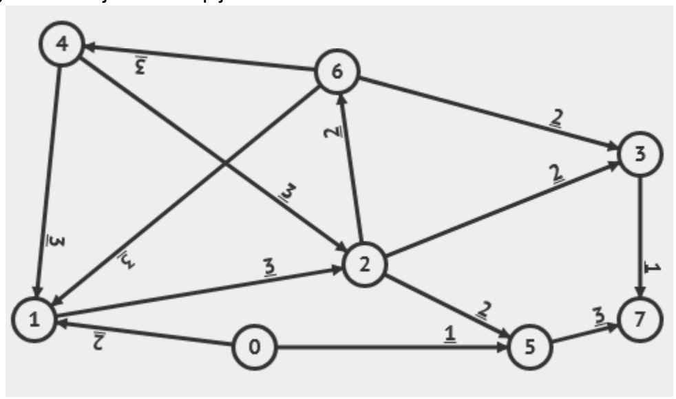 Diketahui 8 buah kota dengan label 0, 1, 2, ..., 7 yang masing-masing terhubung dengan sebuah jalan. Setiap jalan bersifat satu arah.