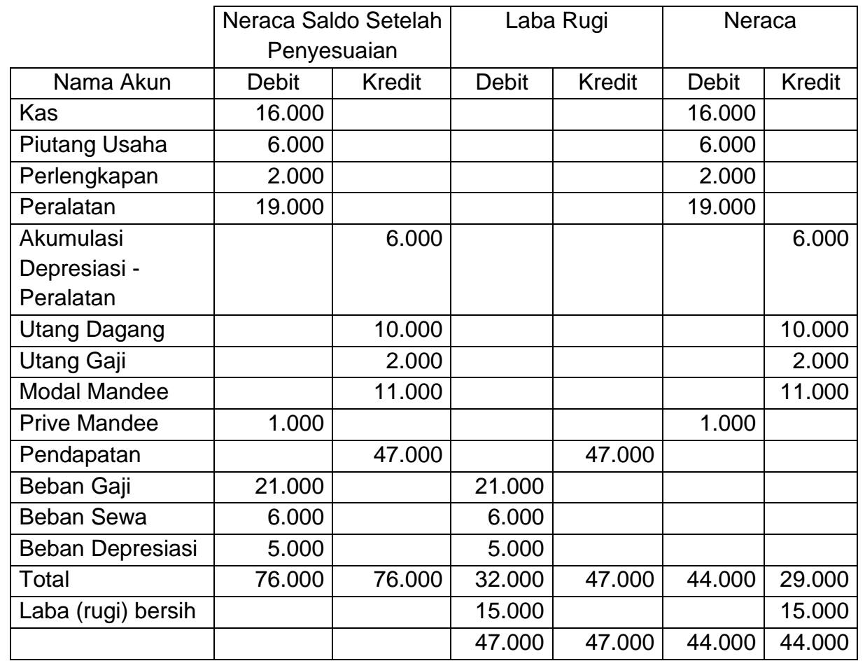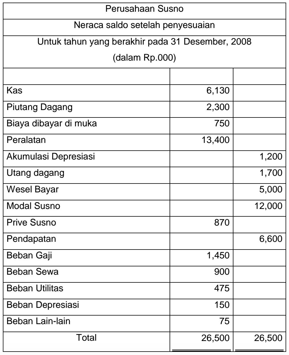 Berikut ini adalah neraca saldo setelah penyesuaian perusahaan Susno