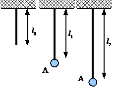 Sebuah karet ringan (massa dapat diabaikan) digantungkan pada langit-langit. Panjang karet dalam keadaan tidak tegang adalah l0. Jika karet ditarik, maka karet dapat dianggap seperti pegas (yang memenuhi hukum Hooke). Karet tidak memberikan gaya pulih ketika panjangnya lebih kecil dari l0. Sebuah massa A digantung pada karet ini sehingga panjang karet (dalam keadaan setimbang) berubah menjadi l1. Kemudian massa A ditarik ke bawah sampai panjang karet menjadi l2. Berapakah panjang l2 agar saat massa A dilepas (dari keadaan diam), dapat persis menyentuh langit-langit? Nyatakan jawaban anda dalam l0 dan l1.