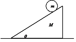 Sebuah bola m, berjari-jari R (I = 2/5 mR2) berada di atas sebuah bidang miring yang memiliki massa M. Ada gesekan yang cukup besar antara bola dan bidang miring sehingga bola menggelinding turun tanpa slip. Berapakah koefisien gesek statis minimum µs antara bidang miring dan lantai agar bidang miring tidak bergerak sama sekali dalam proses ini?