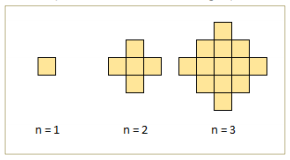 Perhatikan pola bangun berikut ini. Jika untuk n=3 terdapat 5 macam ukuran persegi panjang yang dapat dibentuk, {2×1, 3×1, 4×1, 5×1, 2×3}. Bujur sangkar tidak termasuk sebagai persegi panjang yang dimaksud di sini. Tentukan berapa banyak macam ukuran persegi panjang yang dapat dibentuk untuk n=100?