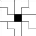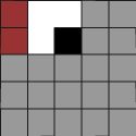 Yang diwarnai abu adalah sebuah tromino berbentuk L, dan yang diwarnai putih adalah sebuah monomino.