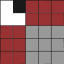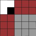 perhatikan bahwa selanjutnya tromino akan mengisi bagian yang merah, menyisakan persegi 3x3 yang tidak mungkin diisi penuh tromino