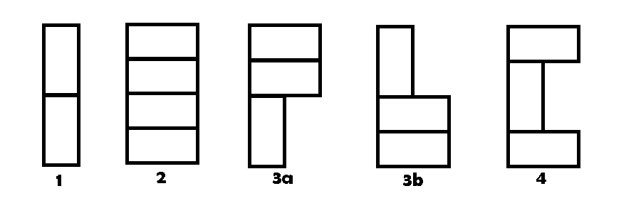 Soal ini akan diselesaikan dengan Dynamic Programming. Kita akan mencari definisi rekursif umumnya. Analisis awal : Jika kita ingin menutupi ubin dengan mengusahakan cukup kolom pertama tertutupi, maka ada 5 kemungkinan