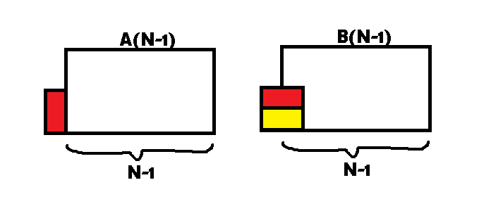 Sehingga berdasarkan 2 kasus tersebut, maka B(N) = A(N-1) + B(N-1)