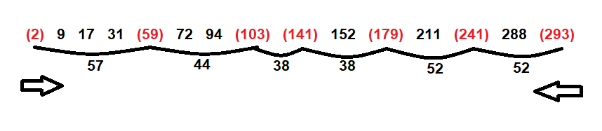 2 9 17 31 59 72 94 103 141 152 179 211 241 288 293