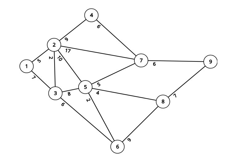 Setiap rumah memiliki nomor dari 1 sampai 9. Dua buah rumah dihubungkan dengan sebuah jalan yang memiliki panjang tertentu. Pak Dengklek sedang berada di rumah no. 1 dan ingin berkunjung ke rumah no. 9. Ada berapa banyak rute berbeda yang dapat Pak Dengklek tempuh dengan total lintasan sependek mungkin? Dua buah rute dikatakan berbeda jika terdapat setidaknya satu jalan berbeda yang dipilih dari satu rute, tetapi tidak pada rute lainnya.
