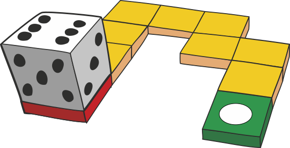 Perhatikan bahwa banyaknya titik di sisi kebalikan sebuah dadu selalu 7 (1 berlawanan dengan 6; 2 berlawanan dengan 5; 3 berlawanan dengan 4). Pada mulanya, sisi dengan 1 titik (berlawanan dengan sisi 6) ada di dasar dadu, seperti ditunjukkan pada gambar. Setelah memutar dadu sekali ke petak kedua, sisi dengan 2 titik (berlawanan dengan 5) akan berada di dasar dadu. Sisi dadu dengan berapa titik ada di dasar dadu saat dadu mencapai petak hijau di ujung?