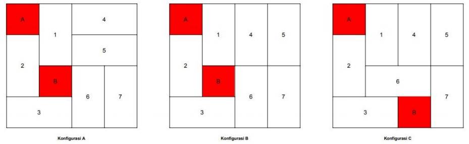 Suatu konfigurasi menarik X disebut berbeda dengan suatu konfigurasi menarik Y apabila posisi petak berwarna merah berbeda. Pada gambar diatas, konfigurasi A sama dengan konfigurasi B, akan tetapi konfigurasi C berbeda dengan konfigurasi A maupun B.