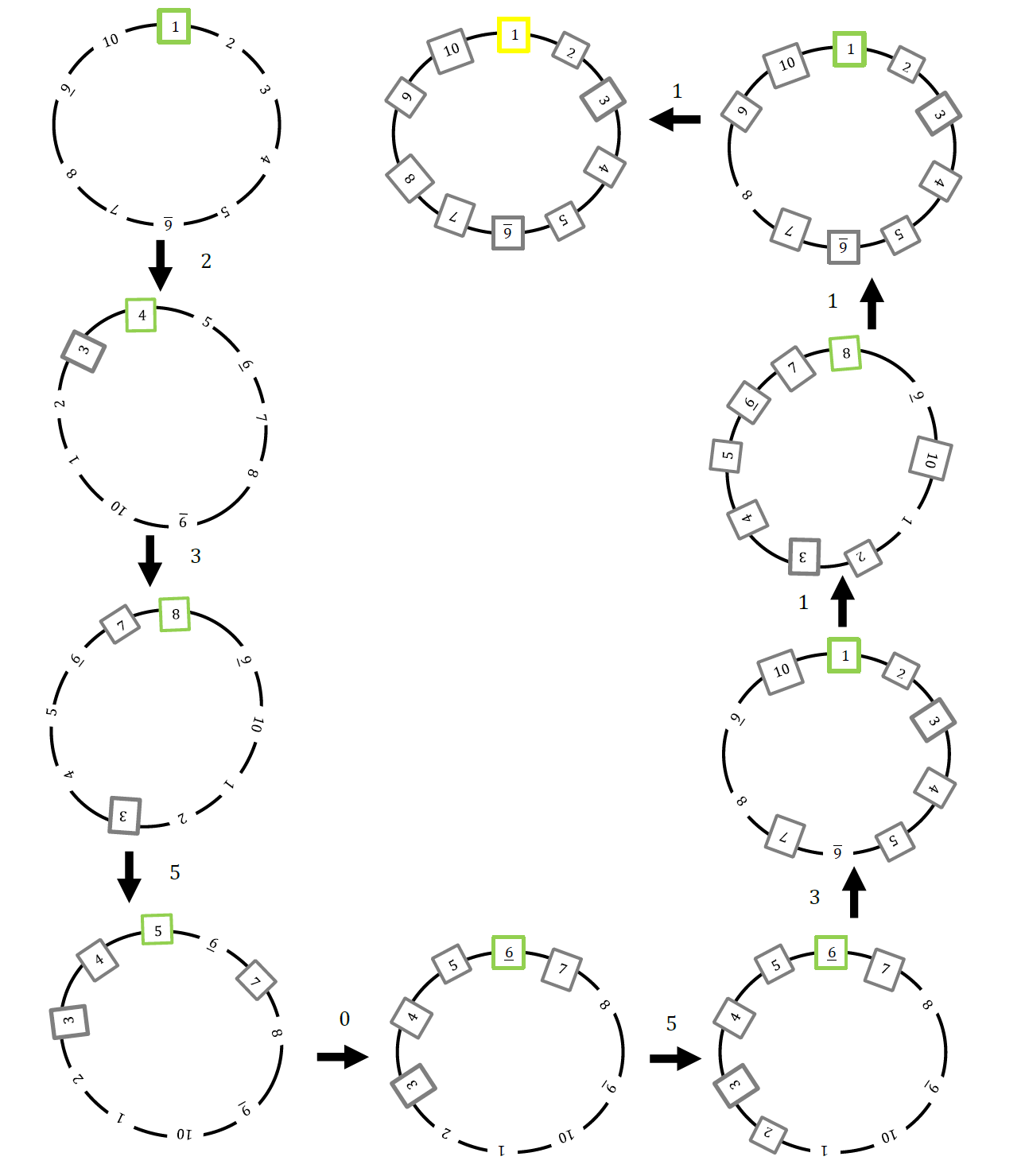 Pak Dengklek sedang bermain dengan 10 buah kartu. Setiap kartu tersebut diberi nomor dari 1 hingga 10. Pada awal permainan, kartu tersebut disusun secara terurut sehingga kartu nomor 1 berada di paling atas dan kartu nomor 10 berada di paling bawah. Satu langkah dilakukan dengan mengambil satu kartu teratas dan diletakkan di tumpukan paling bawah. Satu putaran adalah melakukan X langkah, yang mana untuk putaran ke-i (dimulai dari 1), X menyatakan bilangan prima ke-i. Setelah melakukan satu putaran, Pak Dengklek akan membuang kartu teratas pada tumpukan. Pak Dengklek melakukan hal ini sampai tersisa 1 kartu. Berapakah nilai pada kartu yang tersisa?