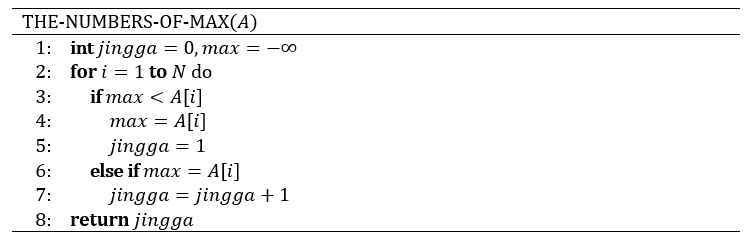 Jika anda baca dan paham apa maksud dari deskripsi soalnya, masalahnya dapat diterjemahkan menjadi berapa banyak siswa yang memiliki nilai termaksimum pada kelas tersebut. Mari kita telusuri sebuah array yang misterius dalam rangkaian figur berikut: