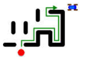 Sebuah robot condong ke kanan akan menelusuri suatu maze sebagai berikut: ia akan berjalan menyusuri jalan dan akan selalu belok ke kanan kapan saja itu memungkinkan. Gambar di samping ini menunjukkan contoh bagaimana robot itu akan berjalan di dalam maze contoh.