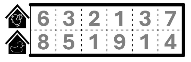 Selain beternak bebek, Pak Dengklek juga sekarang beternak ayam. Seluruh ayam dan bebek tersebut berada di dalam pekarangan yang sama berbentuk segiempat berukuran 2 baris dan N kolom. Baris atas dinomori 1 dan baris bawah dinomori 2. Dari kiri ke kanan, kolom-kolom pekarangan dinomori dari 1 hingga N. Petak pada baris x dan kolom y direpresentasikan dengan (x, y).